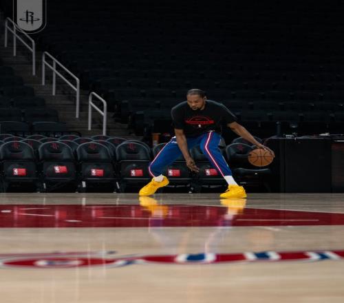 火箭队首发阵容:谢泼德、汤普森、杜兰特、史密斯、申京
