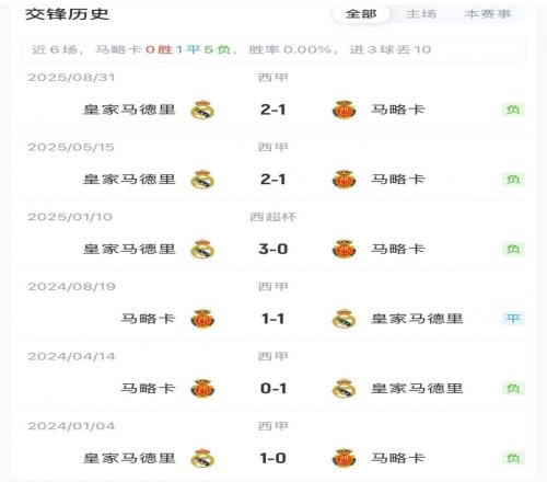 积分榜方面,皇马目前西甲29轮22胜3平4负,积69分排在第二,落后榜首巴萨4分;马略卡则是29轮7胜7平15负,积28分排在倒数第三。