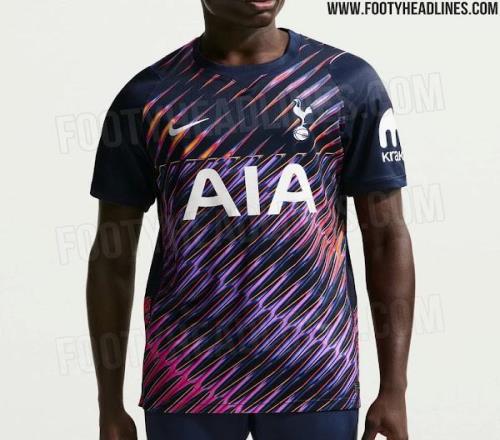 值得一提的是,这种大面积高对比度霓虹图案的设计在热刺近年客场球衣中较为少见,为球队形象注入了更为激进与前卫的视觉语言,也体现了品牌在设计上的大胆尝试。